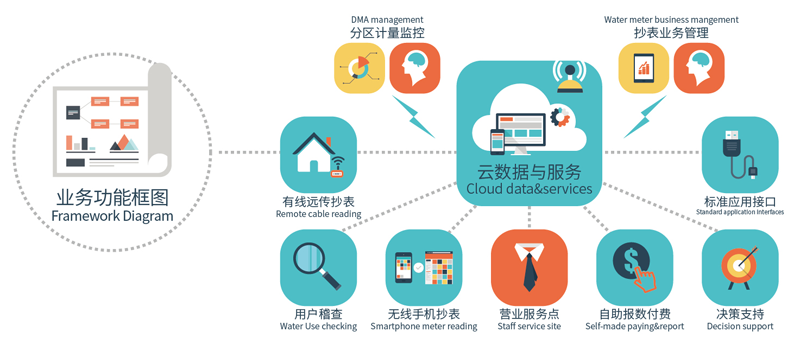 功用:用于管理智能手机抄表充值,有线远程抄表、营业网点充值的专有业务信息系统,可自动 适应有线与无线的抄表模式。设计有阶梯水价与用量定额管理功能,支持预付费使用管理,支持对用水即时调价业务。系统还为管理者提供有丰富的数据规划方案, 以及统计分析与决策支持功能,另外标准的数据应用接口策略可使本系统快速接入第三方管理系统。