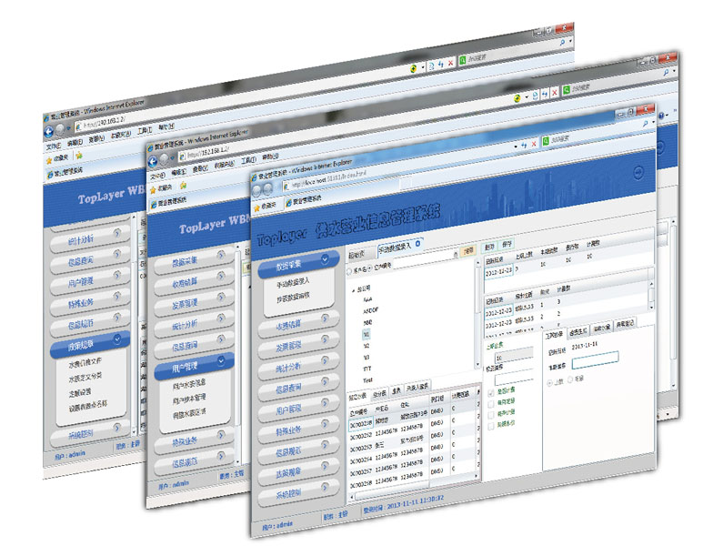 许可多种收费业务:支持柜台收费、上门走收,预交水费、银行托收、售水充值等;
